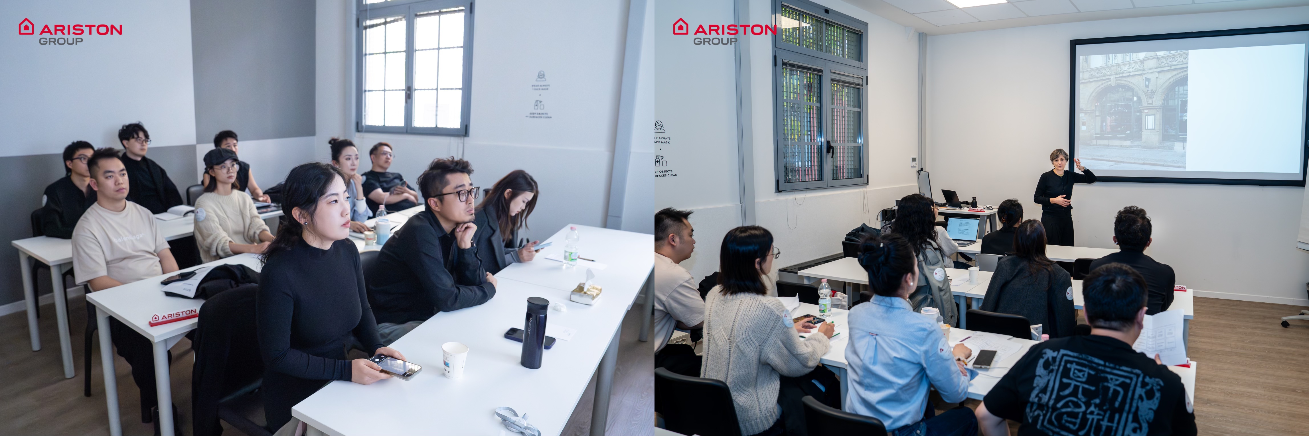 在為期五天的深度課程中,教授們通過解析1930年代至今的經典案例,系統闡釋了意大利設計的核心精神。從居住空間到辦公空間,從展覽設計到酒店與零售空間,每一堂課都在強化一個理念:真正的奢侈不在于表象的華麗,而在于材質的選擇、工藝的精度、對使用場景的細膩考量,以及對環境責任的深刻自覺。這種對品質與責任的極致追求,與意大利源遠流長的定制傳統一脈相承:設計不僅應回應人的真實需求,創造觸動人心的多感官體驗,更應在材料選擇、工藝實現與空間生命周期中貫徹可持續理念,實現人與環境的和諧共生。這正如作為意大利供暖熱水世家的阿里斯頓,近百年來始終將“溫度”視為設計的核心,將意式美學與匠心工藝融入產品細節,讓家居空間不僅擁有視覺的美感,更具備觸手可及的溫暖質感以及面向未來的可持續內涵。