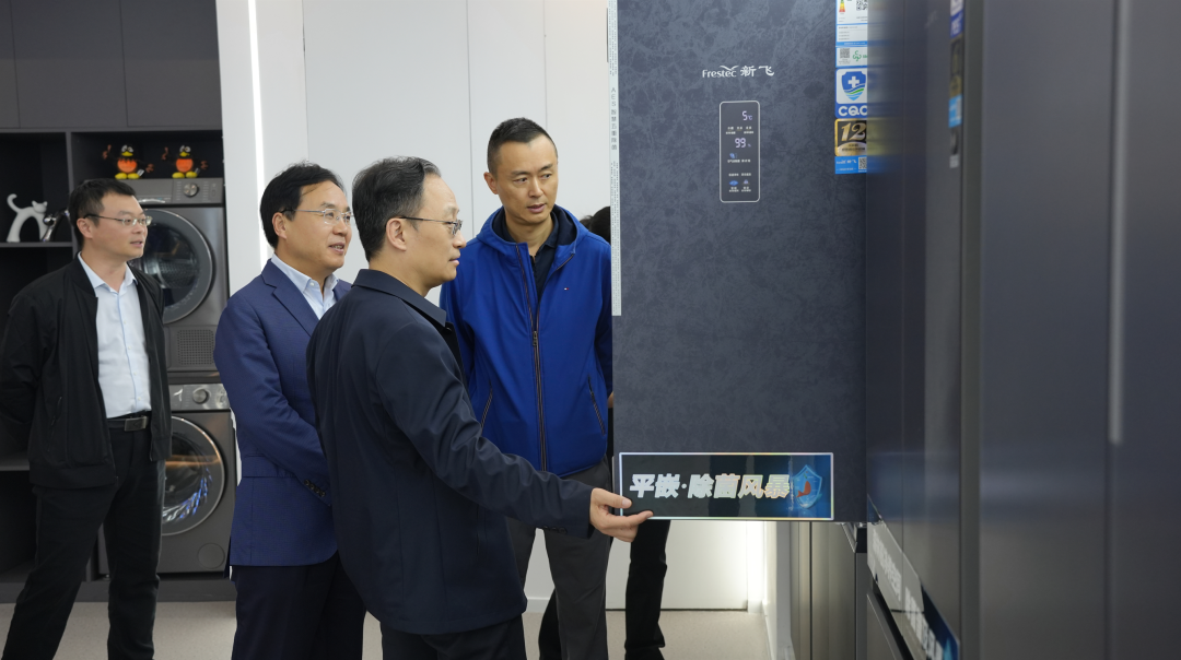 調(diào)研組一行先后參觀了新飛生產(chǎn)車間、產(chǎn)品展示廳,詳細(xì)了解新鄉(xiāng)家電產(chǎn)業(yè)發(fā)展,以及新飛智家產(chǎn)業(yè)園生產(chǎn)營運情況、重點項目推進、產(chǎn)品創(chuàng)新成果、企業(yè)存在的困難等,認(rèn)真聽取對財政工作的意見和建議。