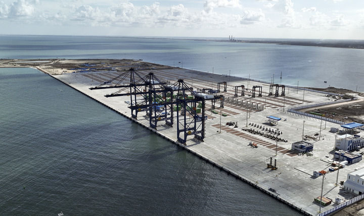 這是2023年12月1日在埃及亞歷山大拍攝的由中國港灣工程有限責(zé)任公司承建的阿布基爾集裝箱碼頭。新華社發(fā)(中國港灣工程有限責(zé)任公司供圖)